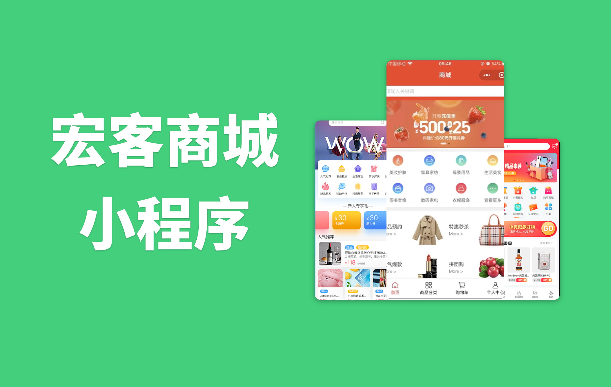 宏客商城,是我公司为了满足不同客户线上需求而研发的一套服装行业商城,包含积分商城,优惠券,领券中心,积分兑换,在线下单,店内提货等功能,免去了商家注册微信支付,小程序等繁琐的事情