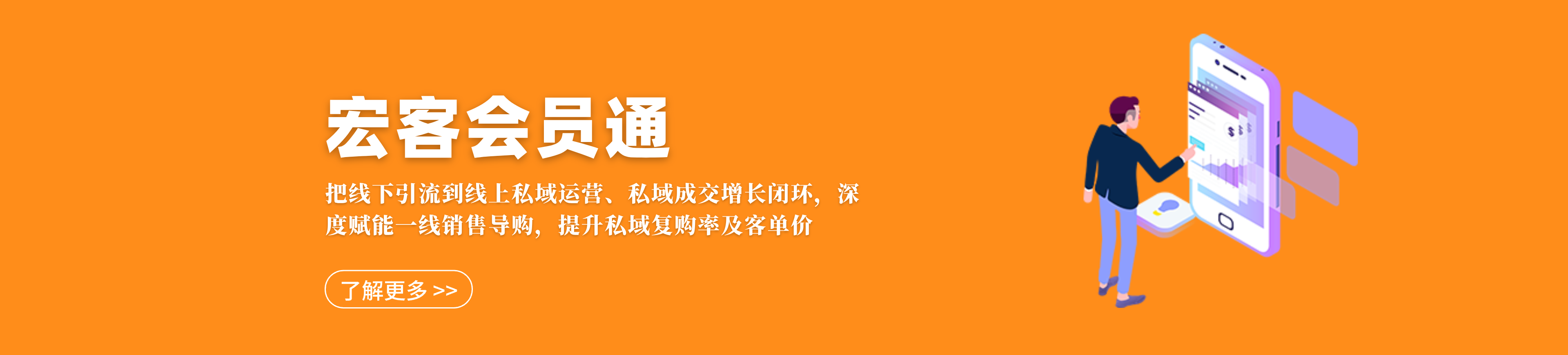 宏客会员通是我公司为中小型鞋服公司量身打造的私域流量利器,免去了微信公众号、微信支付、小程序注册的繁琐,顾客进店扫码注册会员