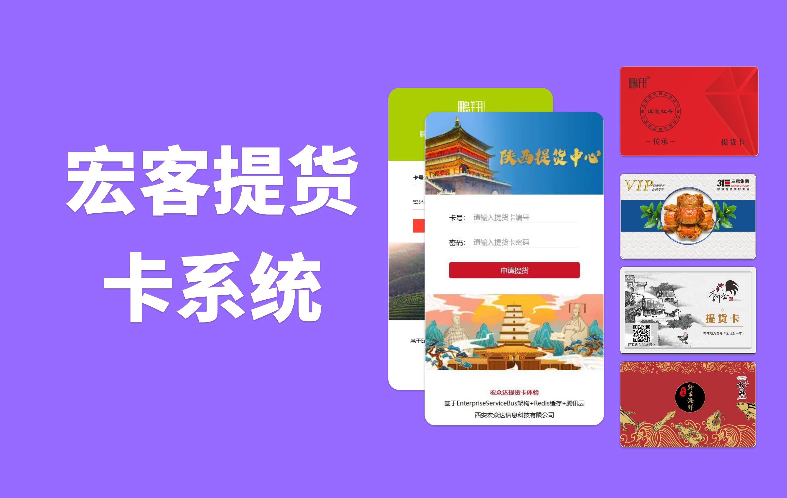 实体卡线上提货、配送到家,线下提货、门店兑换; 用于大闸蟹、海鲜、果蔬、茶叶、大米、燕窝、蛋糕、月饼等提货用途。
